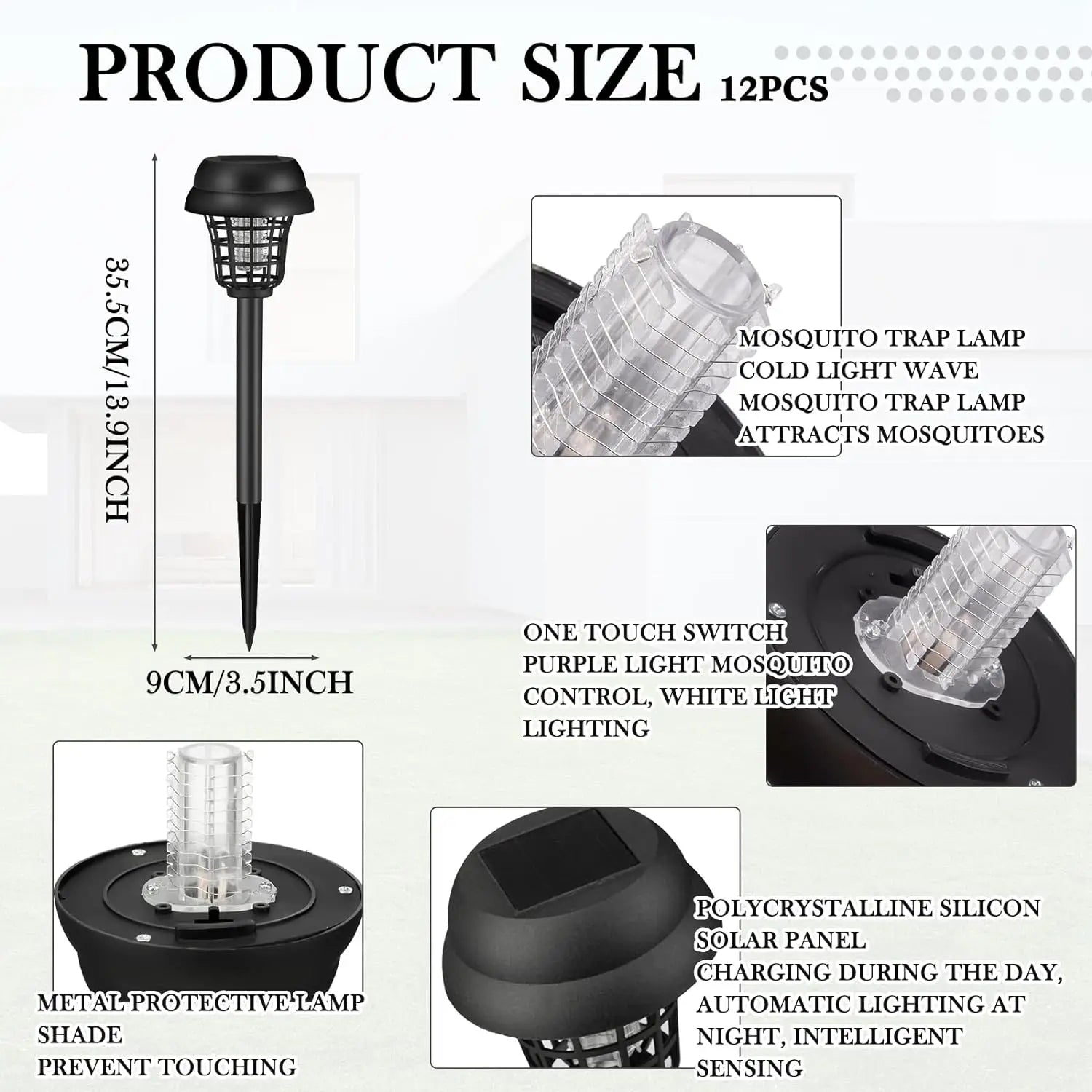 • Solar-powered :No need for electricity or batteries, this zapper lamp is powered by the sun, making it eco-friendly and cost-effective.